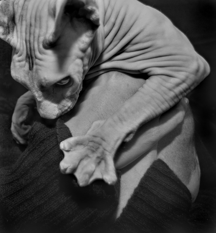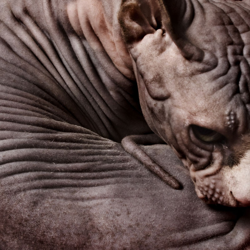 Sphynxes aren't truly hairless. Instead, think of peach fuzz when you think of these felines' skin. Still, their lack of a pelt makes for warm skin, but a cold kitty. They need to snuggle a fair amount to keep warm. So, if you're wanting an intelligent, friendly cat who's obligated to snuggle you, this breed may be the one for you. Of course, with millions of unwanted cats and kittens on the planet, you might find a hairy one that suits you just fine.